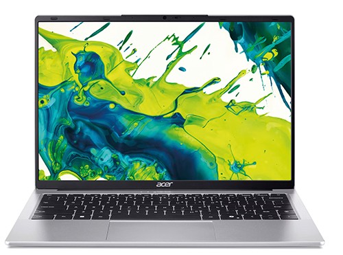 Acer 14 inch laptop Aspire Lite AL14-32P-36GQ. Intel® Core™ 3 N355 processor. 8GB LPDDR5. 512GB PCIe NVMe SSD. Intel® Graphics. Wi-Fi 6 AX + BT. 1x HDMI, 2 x USB Type-C™ + 2 x USB 3.2. 45 Wh battery. Full HD webcam. Windows 11 Home. US Int. Keyboard. Pure Silver.