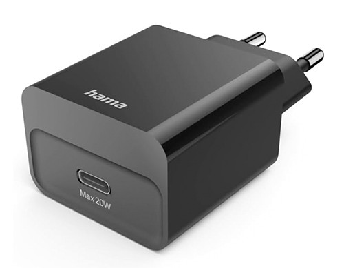 Hama Snellader, USB-C, PD, 20 W, zwart 201959. Oplaadadapter met de snellaadtechnologie Power Delivery: zo laadt u uw smartphone op topsnelheid via het stopcontact op. Zwart.